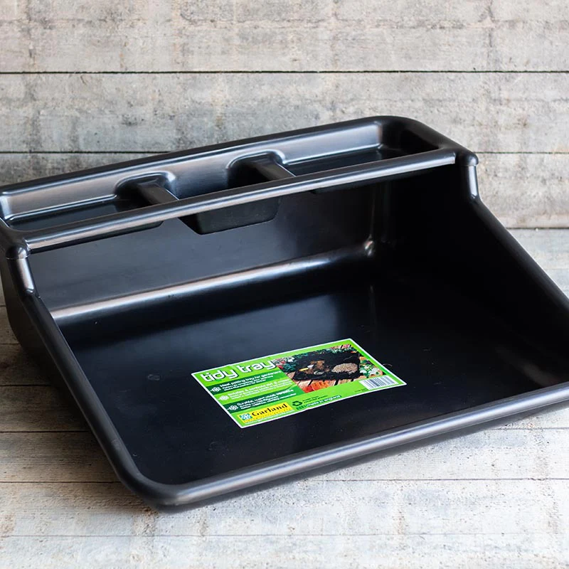 Dit is de "grote broer" van de compacte Tidy Tray Je hebt op deze tray lekker veel werkruimte en er kan meer potgrond en vermiculite op. Je kunt lekker aan de slag zonder dat je hele werktafel onder de aarde komt te liggen. Deze Tidy Tray van Garland Products is gemaakt van stevig gerecycled polypropyleen, hij is uit één stuk, waterdicht en vuilafstotend.