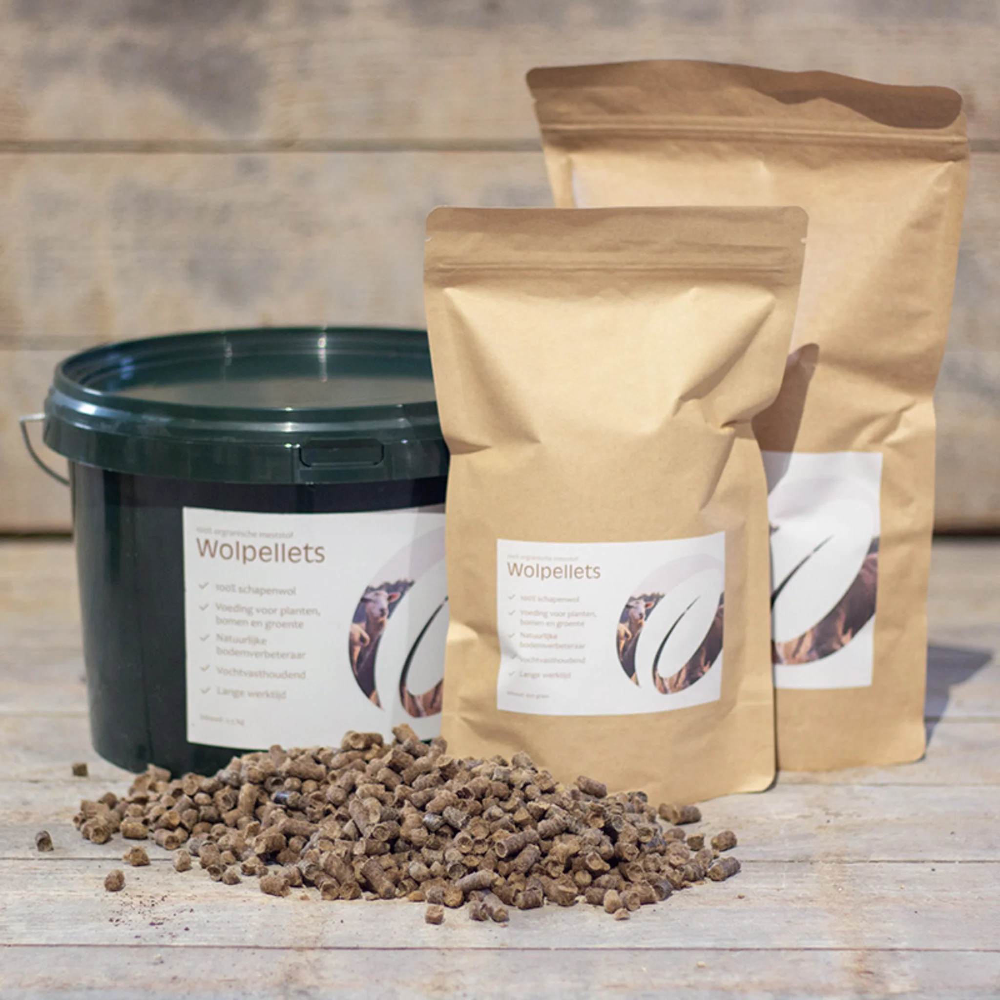 De voordelen van wolpellets van Dutch Wool: Het houdt vocht vast zodat je minder vaak water hoeft te geven, het zit boordevol goede meststoffen voor de planten die ook nog eens langdurig worden afgegeven, het is voor 100% van schapenwol, goed voor het bodemleven en 't breekt helemaal af in de grond. Het is bij ons te koop in verpakkingen van 450 gram, 1kg en 2,5kg .